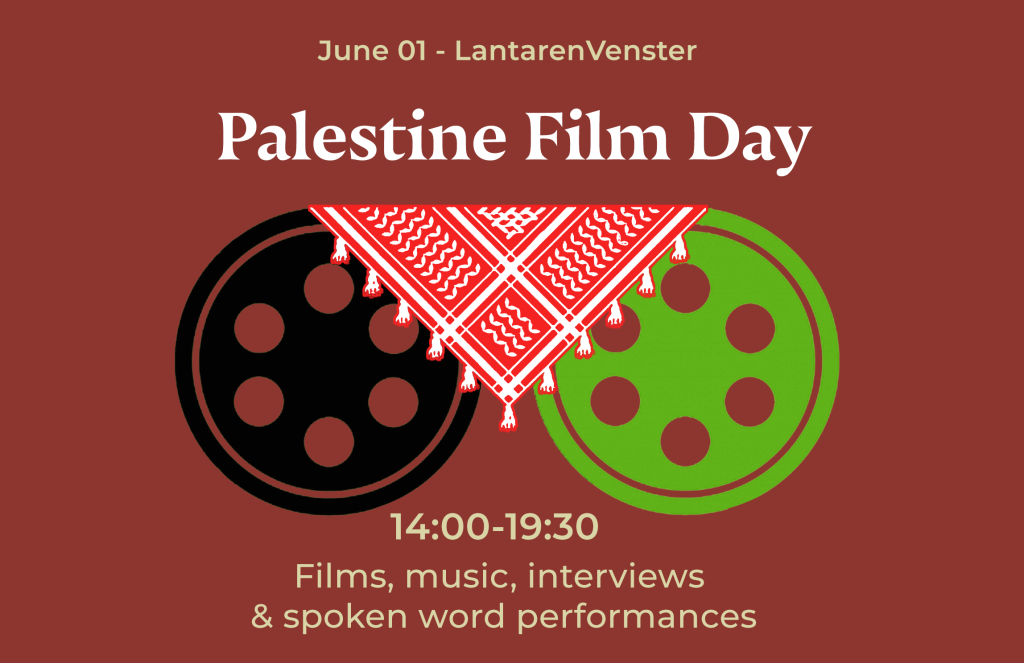 Palestine Film Day program, we have a stage in the foyer of Lantaren Venster where we host music, interviews, and spoken word performances.